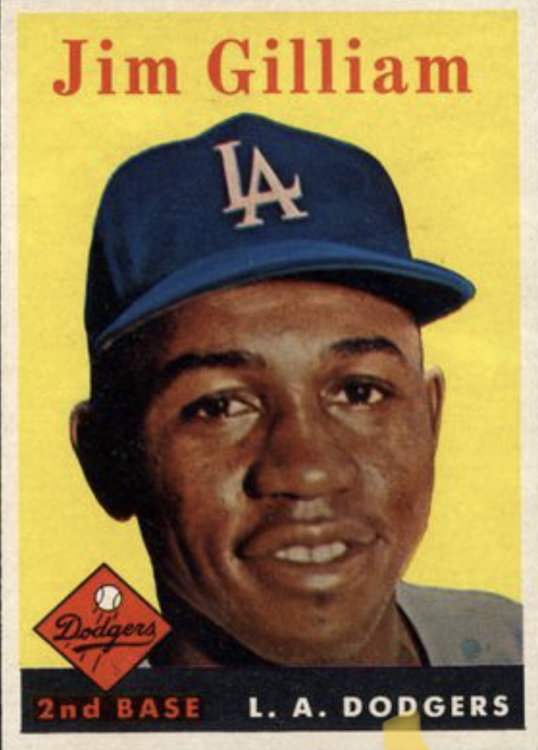 James William “Junior” Gilliam (Born in Nashville, TN on October 17, 1928 – October 8, 1978) signed with the Brooklyn Dodgers in 1951 and was sent to the Montreal Royals, Brooklyn’s farm affiliate, of the International League because African-Americans were still barred from playing in the Texas League. As he started out in the Negro Leagues with the Baltimore Elite Giants, Gilliam learned to switch-hit, was one half of Baltimore’s double play combo (with Pee Wee Butts) and played in three straight Negro League All-Star Games. Jim joined the successful 1953 Dodgers team, replacing Jackie Robinson at second base, collected 125 hits including a National League leading 17 triples, drove in 63 runs and batted .278 over 151 games earning the 1953 National League Rookie of the Year award. Gilliam played second and third base for his entire career in Brooklyn and Los Angeles (1953-1966). In 14 years, Jim collected over 100 hits and over 30 RBI in 12 seasons and batted over .280 four times. He played in seven World Series with the Dodgers capturing the 1955, 1959, 1963 and 1965 Major League titles. Gilliam was also named to the 1956 and 1959 MLB All-Star Games and retired with a .979 fielding percentage. Junior Gilliam retired after the 1966 season with 1,889 hits including 304 doubles, stole 203 bases, scored 1,163 runs and drove in 558 RBI while batting .265 over 14 seasons.